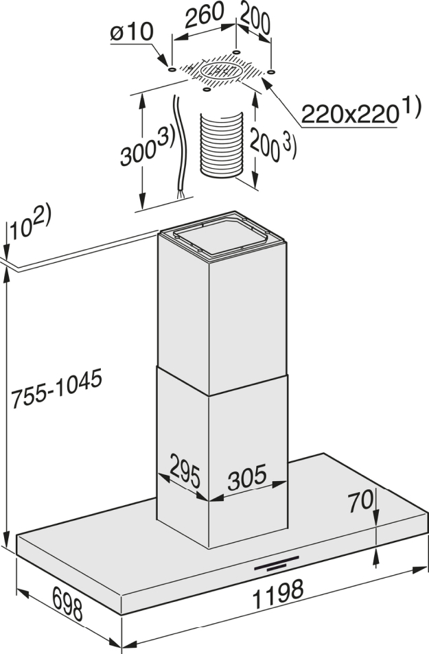 Minimálna vzdialenosť od elektrickej varnej dosky v mmMinimálne vzdialenosti Dodržujte podrobné údaje v návode na použitie týkajúce sa minimálnych vzdialeností. Návod na použitie je k dispozícii v časti Súbory na stiahnutie.