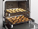 Vďaka plnovýsuvným pojazdom sa dajú plechy, rošty a pekáče Gourmet úplne vytiahnuť z vnútorného priestoru.
