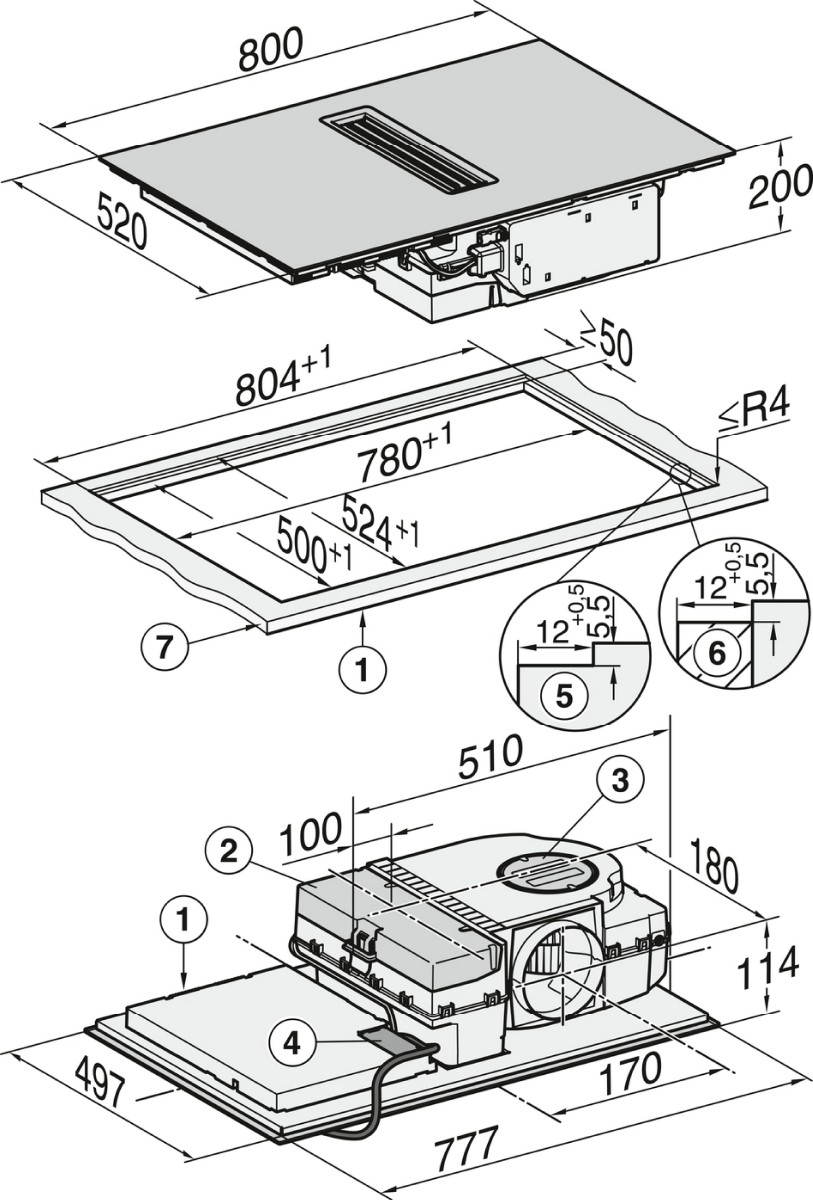 | Montáž bez rámu na zapustenie do pracovnej dosky |