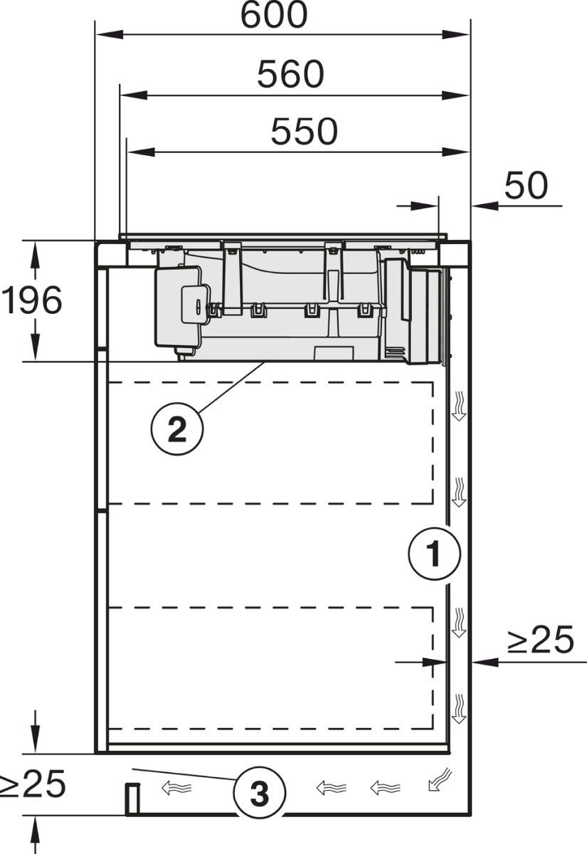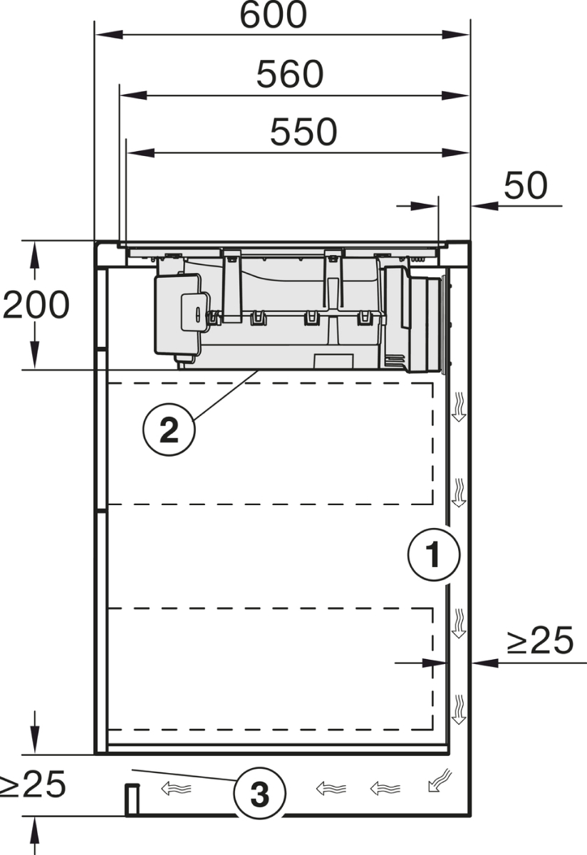| Rozmery výrezu vnútri v mm (hĺbka) pri zabudovaní bez rámu na zapustenie |